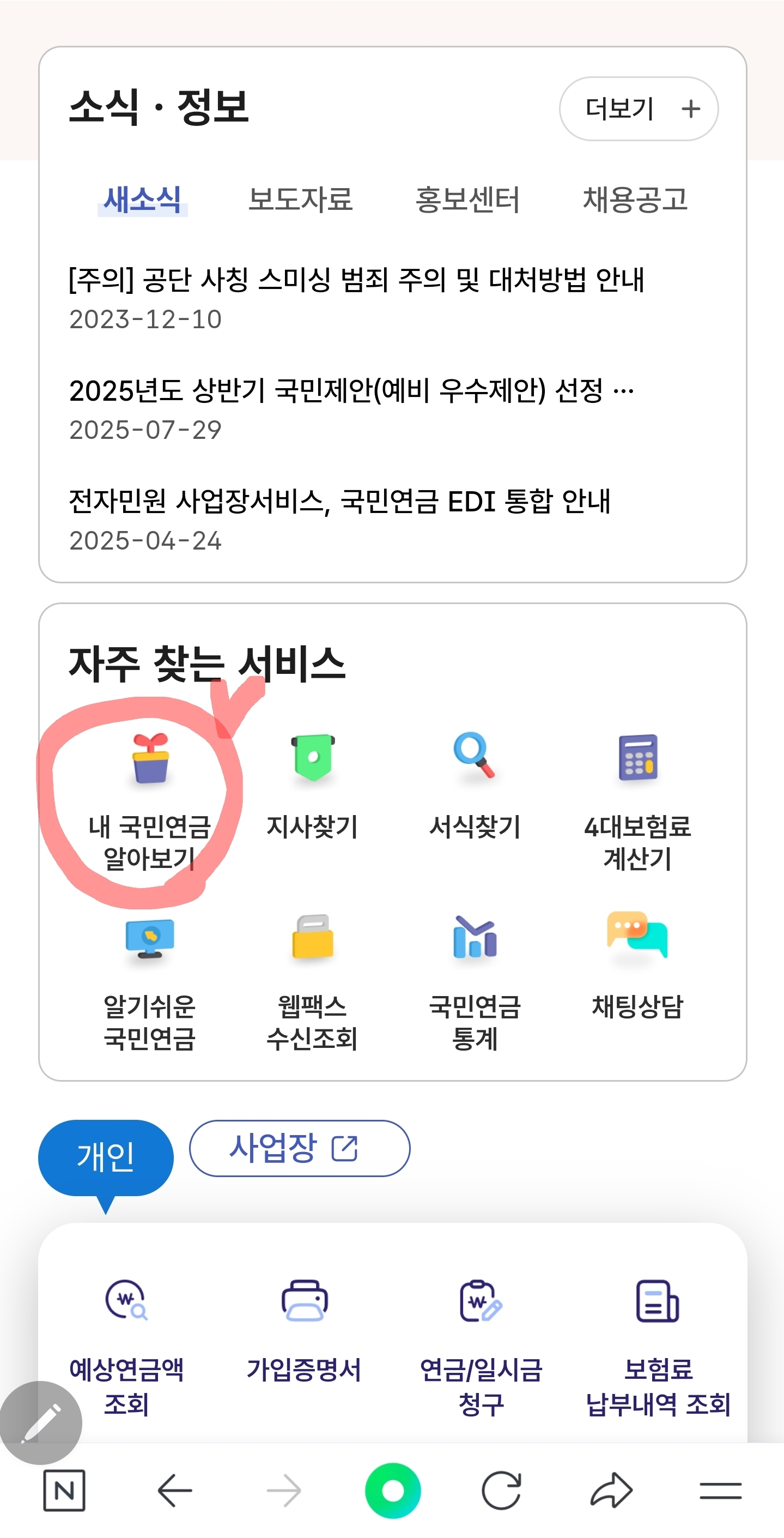 1. 국민연금공단 홈페이지 접속
