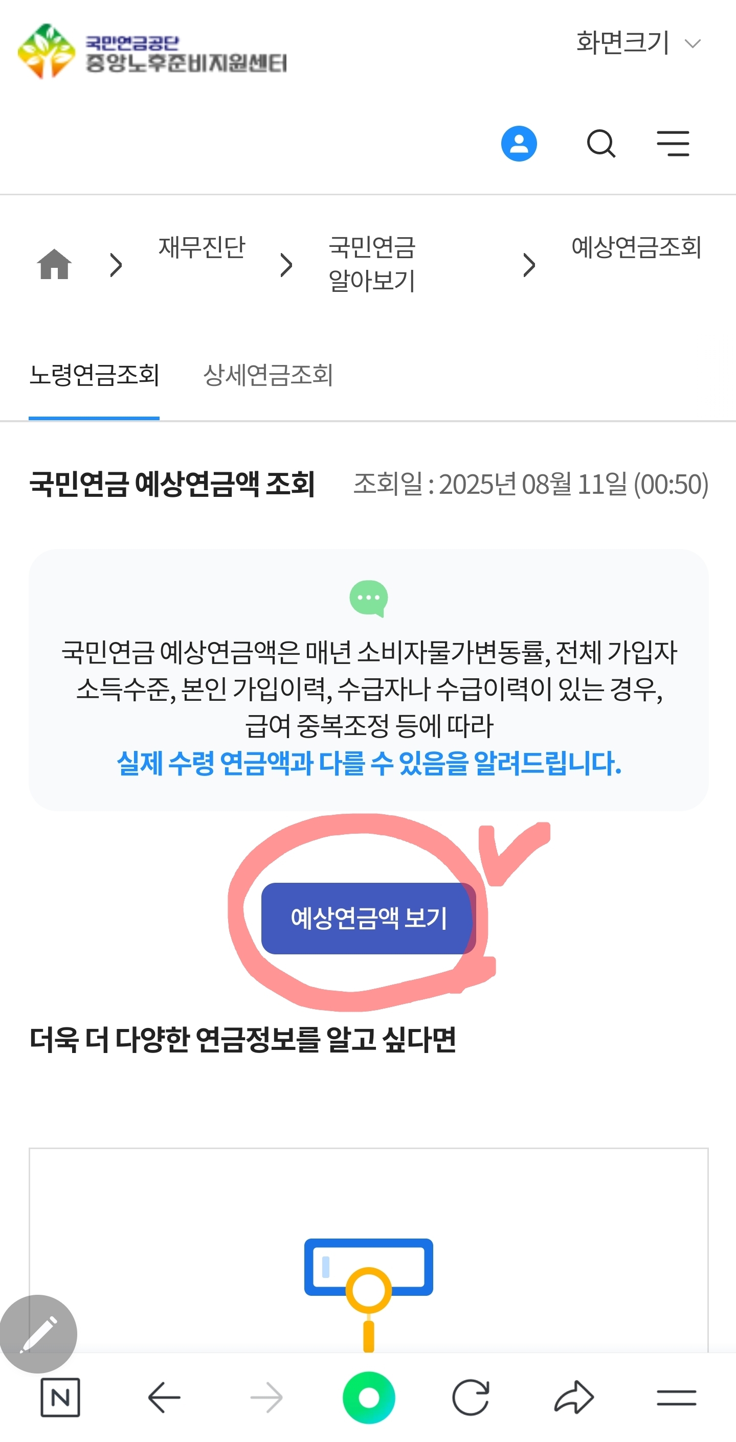 4. ‘예상연금액 보기’ 클릭